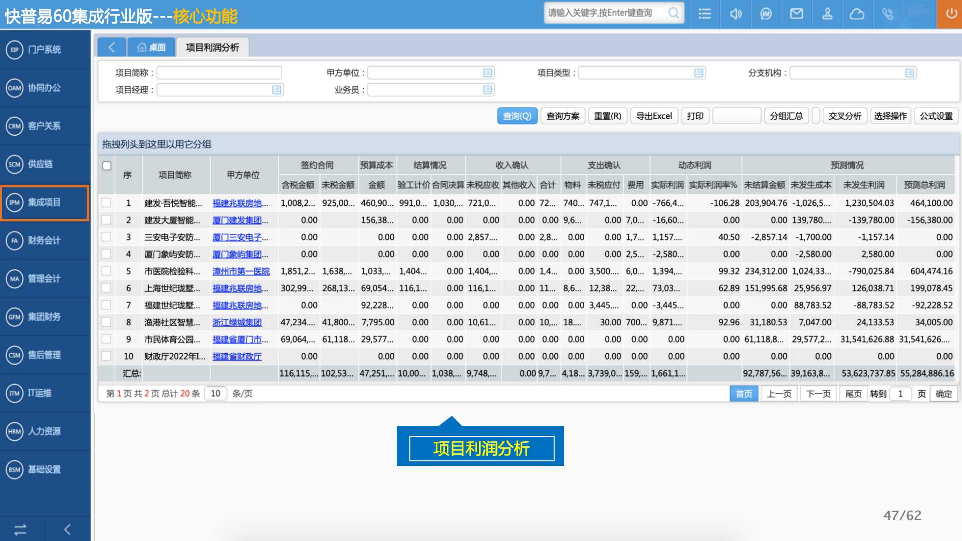 快普易60以客戶為目標(biāo)、以項(xiàng)目為核心,為集成行業(yè)提供數(shù)字化管理解決方案,為組織和業(yè)務(wù)提效,實(shí)現(xiàn)項(xiàng)目全過程管控,有效控制成本,并按項(xiàng)目自動(dòng)進(jìn)行內(nèi)部核算,提升項(xiàng)目的盈利能力,為企業(yè)打造可持續(xù)發(fā)展的經(jīng)營(yíng)模式。