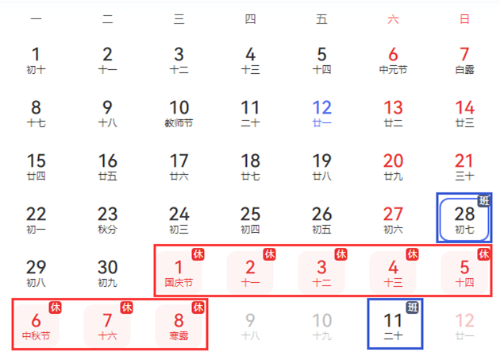 2、補(bǔ)班時(shí)間:2025年9月28日(周日)、2025年10月11日(周六)