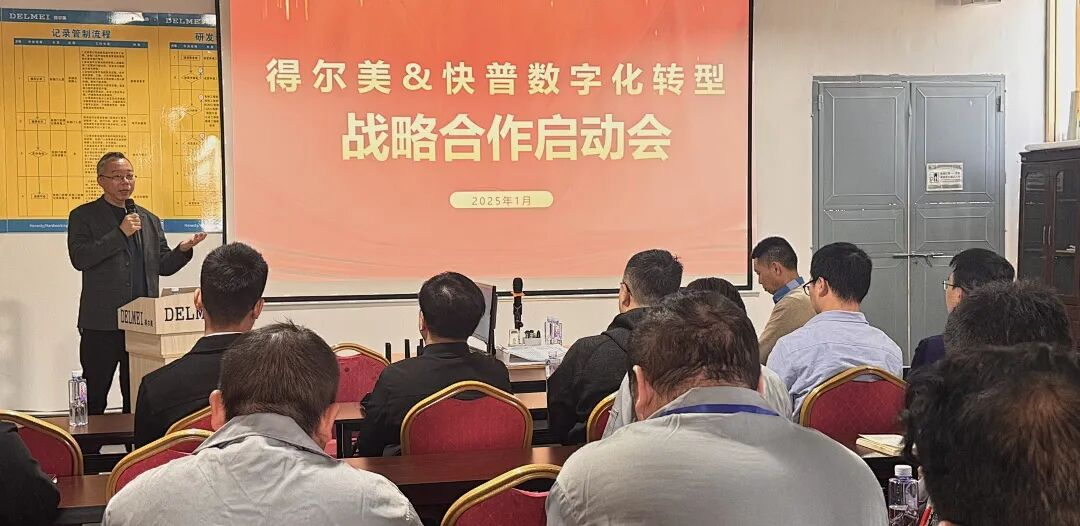 1月3日下午,項目啟動會在得爾美總部召開, 得爾美董事長嚴永強、IT負責人賴天榮與核心業(yè)務部門負責人,以及快普董事長溫祝平帶領的生產(chǎn)行業(yè)資深實施顧問、高級產(chǎn)品經(jīng)理、高級開發(fā)工程師等項目專班團隊,一同參與了會議。